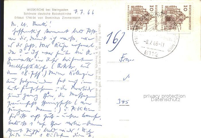 72012202 alte Postkarte Steingaden Oberbayern Wieskirche Rokokokirche postalisch gelaufen Erhaltung siehe scans KatCode: 11110009190154