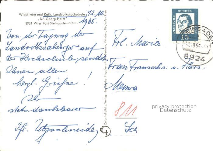 72016157 alte Postkarte Steingaden Oberbayern Wieskirche und Landvolkshochschule postalisch gelaufen Erhaltung siehe scans KatCode: 11110009190154