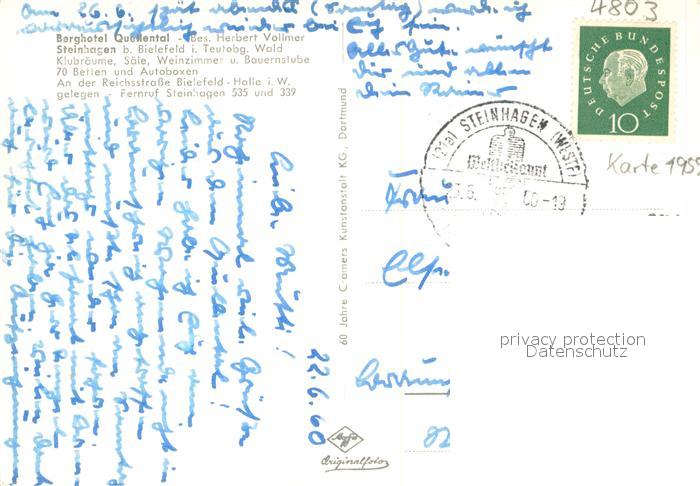 73705667 alte Postkarte Steinhagen Westfalen Berghotel Quellental Terrasse postalisch gelaufen Erhaltung siehe scans [LiesaD40] KatCode: 11110005754040