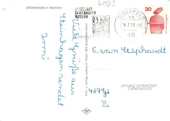 73695811 alte Postkarte Steinhagen Westfalen Der Schlichtekrug Kirchenportal mit St.Michael u.Ehrentafel Kriegerdenkmal postalisch gelaufen Erhaltung siehe scans [LiesaD40] KatCode: 11110005754040