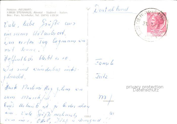 old postcard Steinhaus Cadipietra Gasthof Neuwirt postalisch gelaufen Erhaltung siehe scans