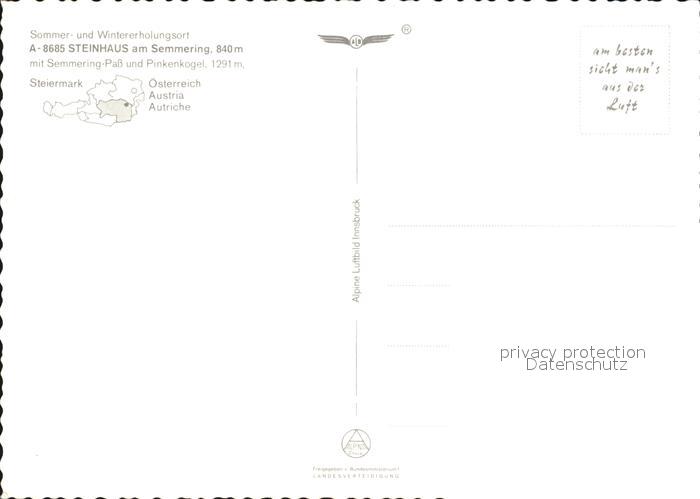 72470756 Steinhaus Semmering Panorama Sommer und Wintererholungsort Fliegeraufnahme postalisch nicht gelaufen Erhaltung siehe scans KatCode: 11390122031838