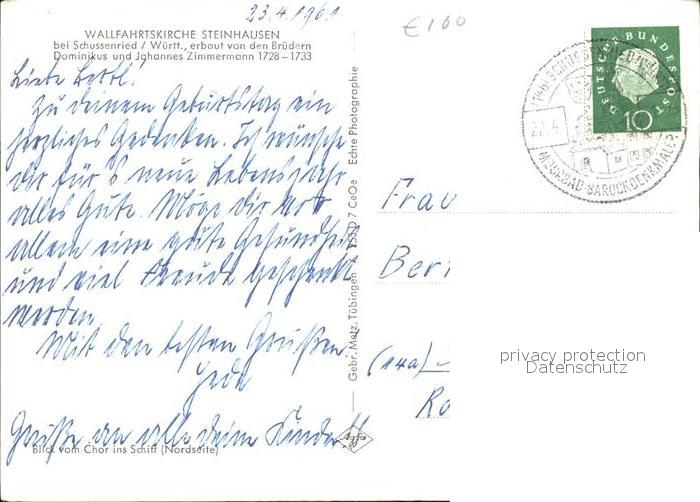 72404998 alte Postkarte Steinhausen Bad Schussenried Wallfahrtskirche Barock Fresken postalisch gelaufen Erhaltung siehe scans KatCode: 11110008426014