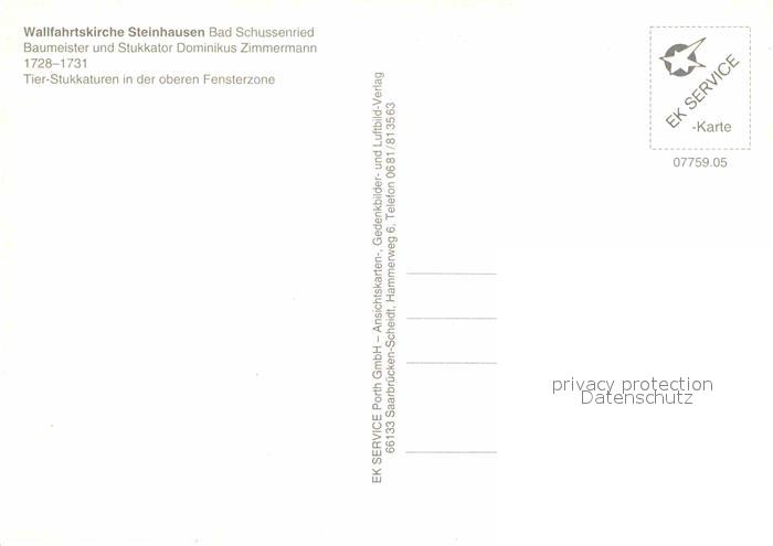 72677478 Steinhausen Bad Schussenried Wallfahrtskirche Baumeister Stukkator Dominikus Zimmermann 18. Jhdt. Tier Stukkaturen postalisch nicht gelaufen Erhaltung siehe scans [FriedD77] KatCode: 11110008426014