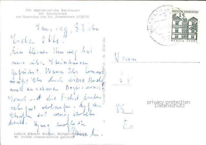 71894687 alte Postkarte Steinhausen Bad Schussenried Wallfahrtskirche Fliegeraufnahme postalisch gelaufen Erhaltung siehe scans KatCode: 11110008426014