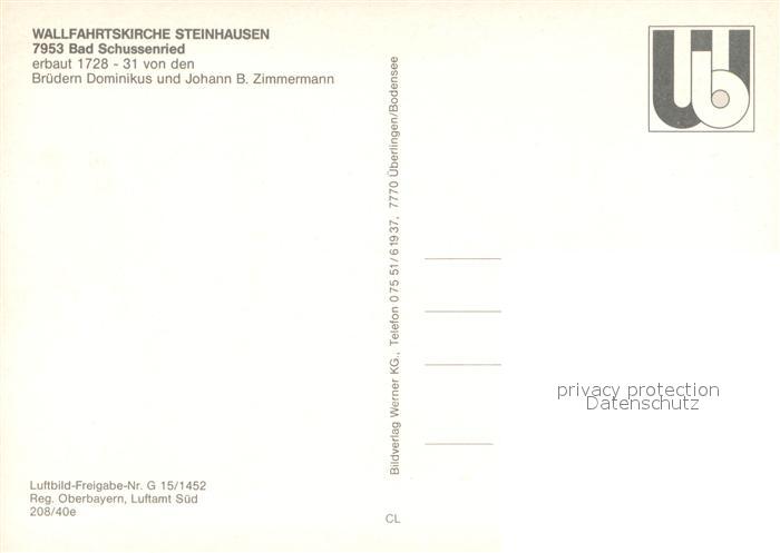 73721983 Steinhausen Bad Schussenried Wallfahrtskirche postalisch nicht gelaufen Fliegeraufnahme Erhaltung siehe scans [FriedD77] KatCode: 11110008426014