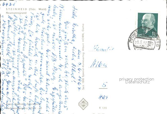 72181438 alte Postkarte Steinheid Neumannsgrund postalisch gelaufen Erhaltung siehe scans KatCode: 11110016072021
