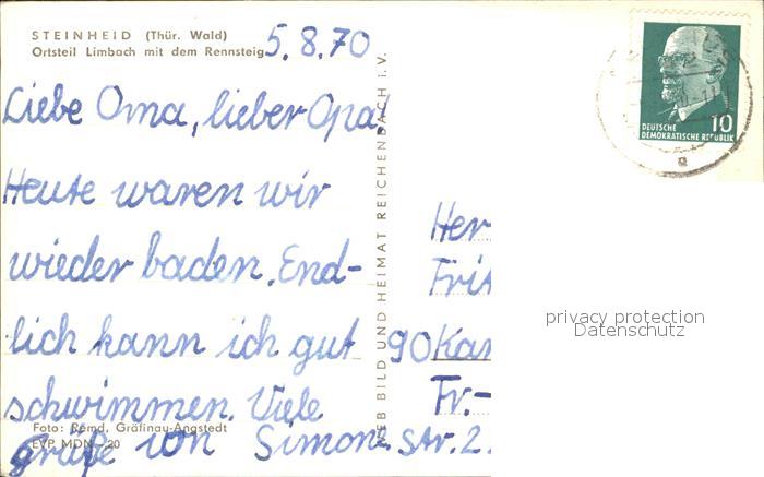 72385173 alte Postkarte Steinheid Ortsteil Limbach Rennsteig postalisch gelaufen Erhaltung siehe scans KatCode: 11110016072021