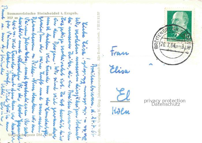 74141589 alte Postkarte Steinheidel Breitenbrunn Erzgebirge Sachsen Sommerfrische postalisch gelaufen Erhaltung siehe scans [SanaeD93] KatCode: 11110014191090