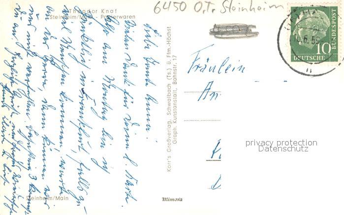 73698408 alte Postkarte Steinheim Main Bergfried des Schlosses Partie am Main postalisch gelaufen Erhaltung siehe scans [FriedD77] KatCode: 11110006435014