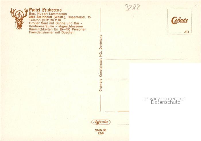 73863397 Steinheim Westfalen Hotel Hubertus Restaurant postalisch nicht gelaufen Erhaltung siehe scans [FriedD77] KatCode: 11110005762032
