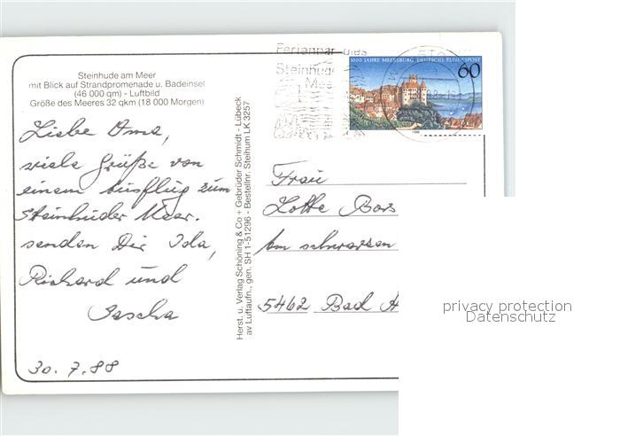 72015507 alte Postkarte Steinhude am Meer mit Strandpromenade und Badeinsel Fliegeraufnahme postalisch gelaufen Erhaltung siehe scans KatCode: 11110003241021
