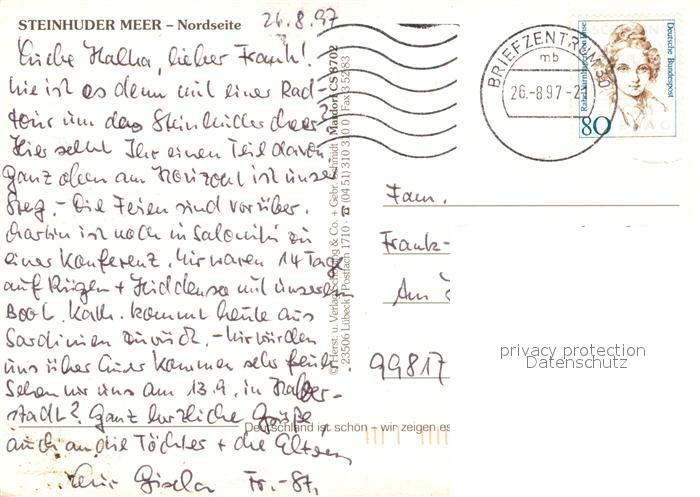 73184150 alte Postkarte Steinhude Fliegeraufnahme Segelhafen postalisch gelaufen Erhaltung siehe scans [LiesaD40] KatCode: 11110003241021