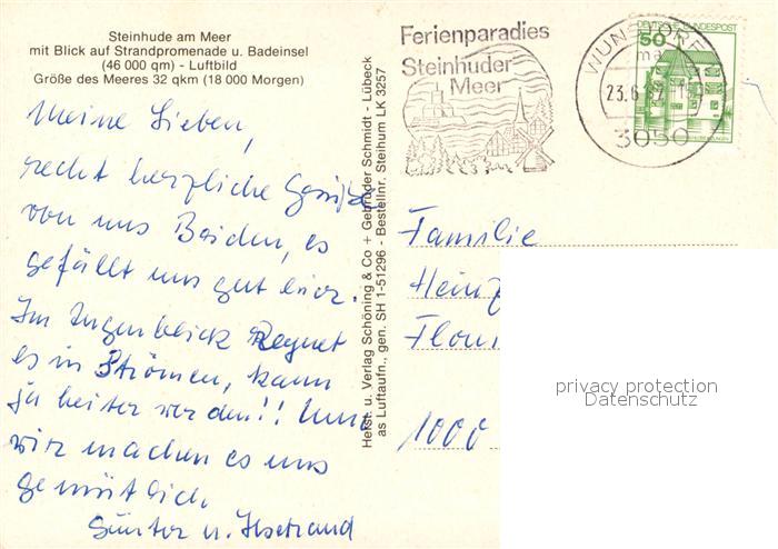 73311956 alte Postkarte Steinhude Fliegeraufnahme Strandpromenade Badeinsel postalisch gelaufen Erhaltung siehe scans [KathaD81] KatCode: 11110003241021