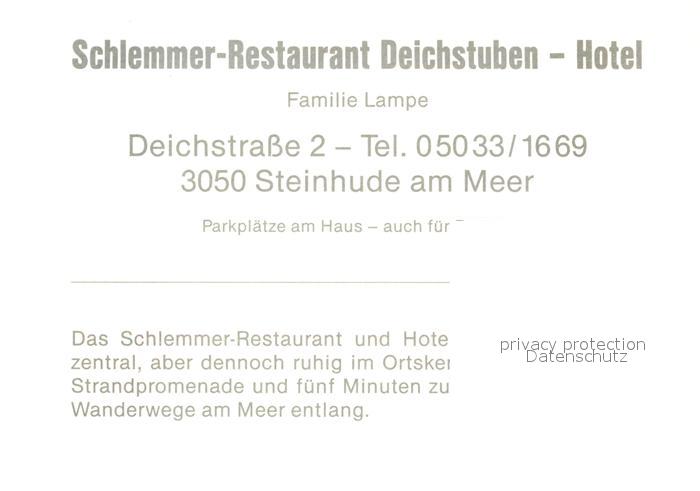73323222 Steinhude Hotel Deichstuben Schlemmer Restaurant postalisch nicht gelaufen Werbekarte (keine Postkarte) Erhaltung siehe scans [FriedD77] KatCode: 11110003241021