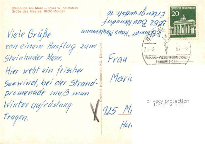 72692868 alte Postkarte Steinhude Insel Wilhelmstein Steinhuder Meer postalisch gelaufen Erhaltung siehe scans [FriedD77] KatCode: 11110003241021