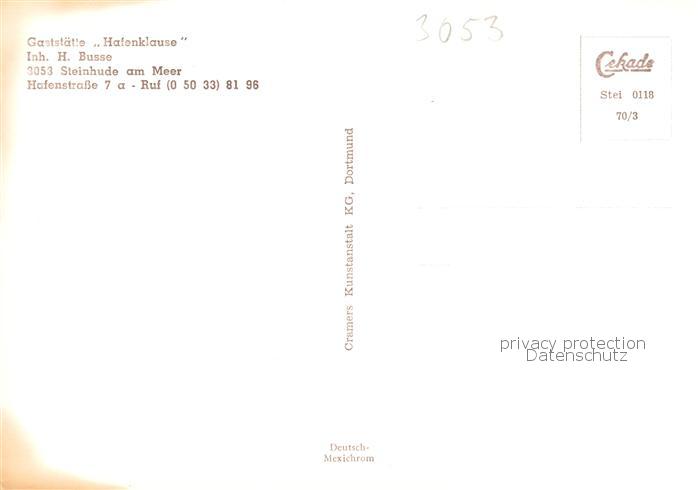 73862317 Steinhude Wunstorf Gaststaette Hafenklause Gastraum postalisch nicht gelaufen Erhaltung siehe scans [FriedD77] KatCode: 11110003241021