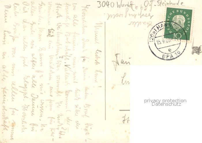 73690873 alte Postkarte Steinhude Wunstorf Graf Adolf Strasse Storchennest Wilhelmstein Auswanderer Boote Muehle Seesteg Partie an der Bruecke postalisch gelaufen Erhaltung siehe scans [WerneD78] KatCode: 11110003241021