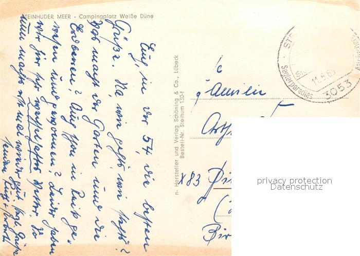 72935158 alte Postkarte Steinhuder Meer Campingplatz Wei?e D?ne postalisch gelaufen Erhaltung siehe scans [LiesaD40] KatCode: 11110003241021
