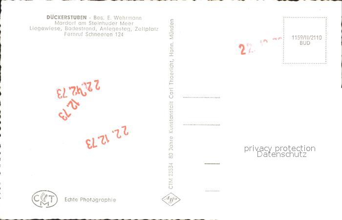 72177405 Steinhuder Meer Dueckerstuben Strand Moewe postalisch nicht gelaufen Erhaltung siehe scans KatCode: 11110003241021