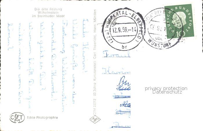 72046821 alte Postkarte Steinhuder Meer Festung Wilhelmstein postalisch gelaufen Erhaltung siehe scans KatCode: 11110003241021