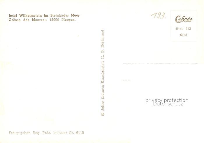 73091498 Steinhuder Meer Fliegeraufnahme Insel Wilhelmstein postalisch nicht gelaufen Erhaltung siehe scans [KathaD81] KatCode: 11110003241021