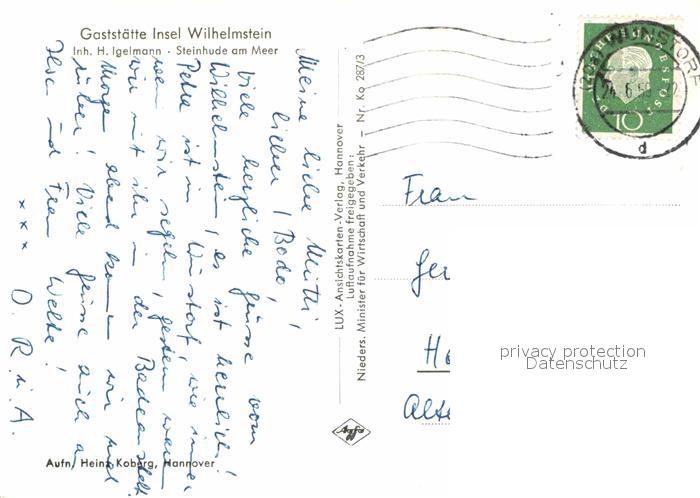 72831482 alte Postkarte Steinhuder Meer Fliegeraufnahme Insel Wilhelmstein postalisch gelaufen Erhaltung siehe scans [LiesaD40] KatCode: 11110003241021