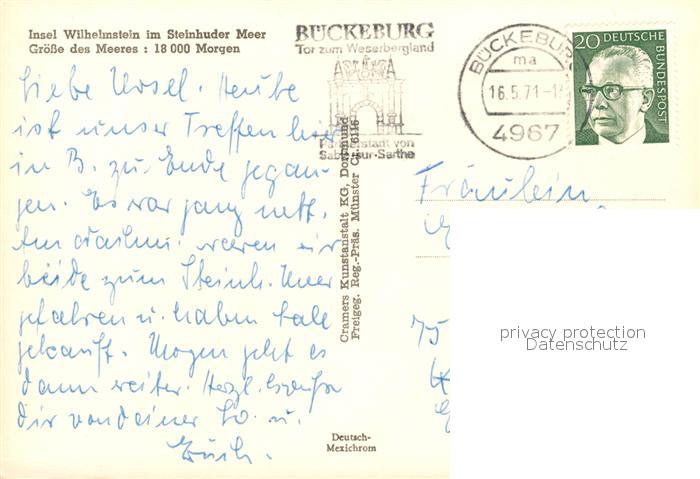 73209946 alte Postkarte Steinhuder Meer Insel Wilhelmstein Fliegeraufnahme postalisch gelaufen Erhaltung siehe scans [WerneD78] KatCode: 11110003241021