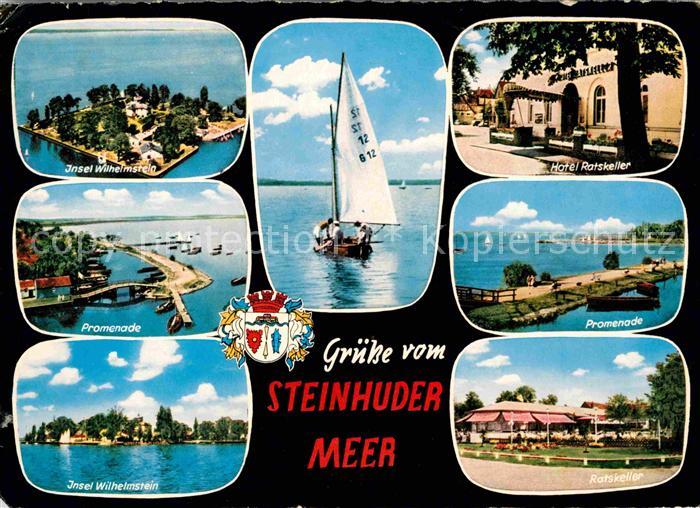 72654615 alte Postkarte Steinhuder Meer Insel Wilhelmstein Promenade Segeln Hotel Ratskeller Ratskeller postalisch gelaufen Erhaltung siehe scans [FriedD77] KatCode: 11110003241021