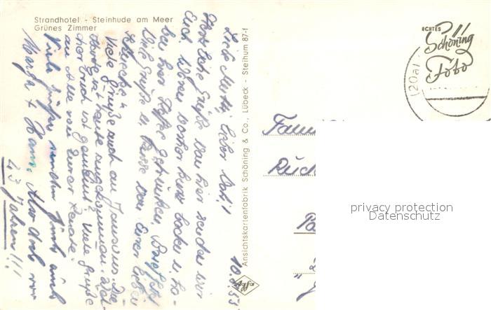 73723639 alte Postkarte Steinhuder Meer Strandhotel Gruenes Zimmer postalisch gelaufen Erhaltung siehe scans [LiesaD40] KatCode: 11110003241021