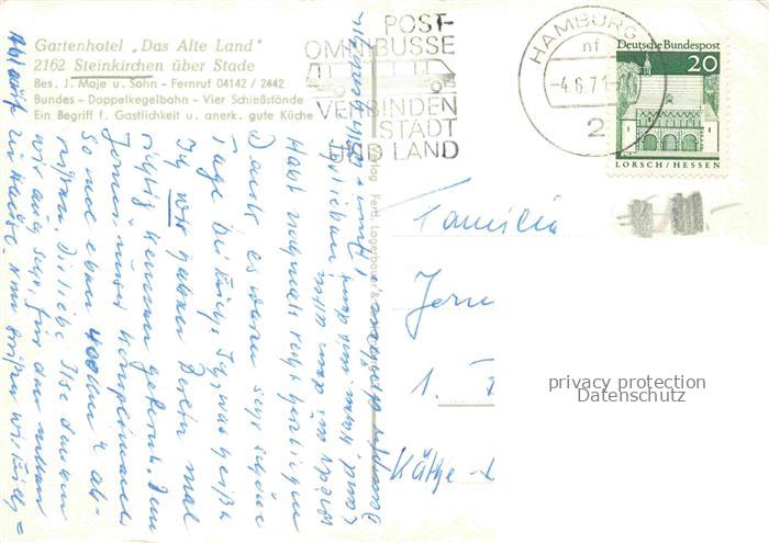 74110465 alte Postkarte Steinkirchen Stade Niedersachsen Gartenhotel Das Alte Land Gastraeume Teich postalisch gelaufen Erhaltung siehe scans [WerneD78] KatCode: 11110003359039