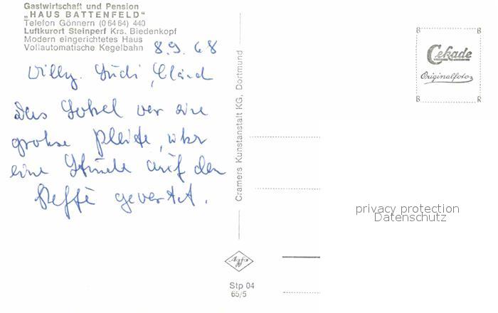 72771318 Steinperf Gasthof Pension Haus Battenfeld Speisesaal postalisch nicht gelaufen Erhaltung siehe scans [AndreD76] KatCode: 11110006534019