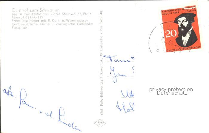 32148981 alte Postkarte Steinweiler Pfalz Gasthof zum Schwanen postalisch gelaufen Erhaltung siehe scans KatCode: 11110007334030