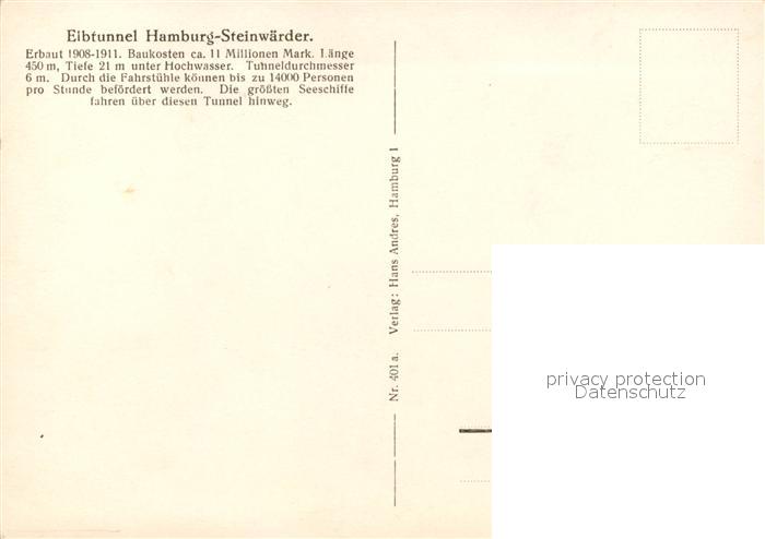 43496438 Steinwerder Hamburg Elbtunnel postalisch nicht gelaufen Erhaltung siehe scans [FriedD77] KatCode: 11110002000000