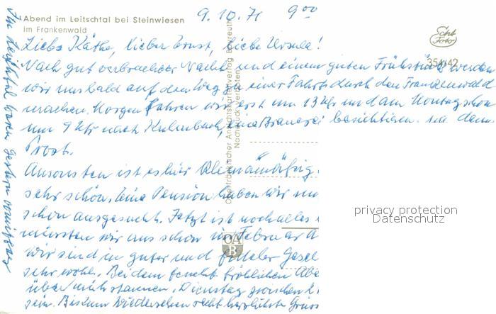 72616238 Steinwiesen Abend im Leitschtal Frankenwald postalisch nicht gelaufen Erhaltung siehe scans [FriedD77] KatCode: 11110009476177