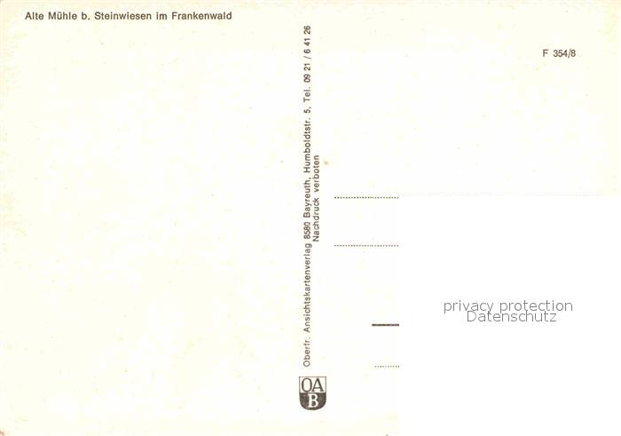 72729033 Steinwiesen Alte Muehle postalisch nicht gelaufen Erhaltung siehe scans [AndreD76] KatCode: 11110009476177