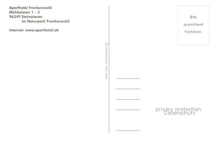 73010157 Steinwiesen Aparthotel Frankenwald im Naturpark Frankenwald postalisch nicht gelaufen Erhaltung siehe scans [WerneD78] KatCode: 11110009476177