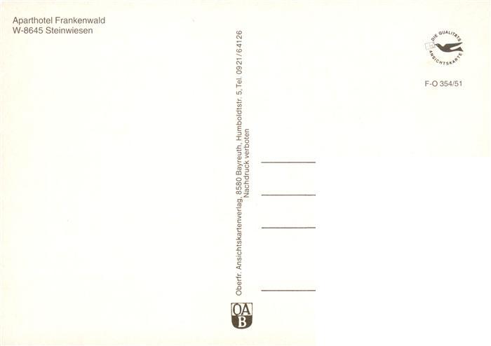 73946691 Steinwiesen Aparthotel Frankenwald postalisch nicht gelaufen Fliegeraufnahme Erhaltung siehe scans [FriedD77] KatCode: 11110009476177