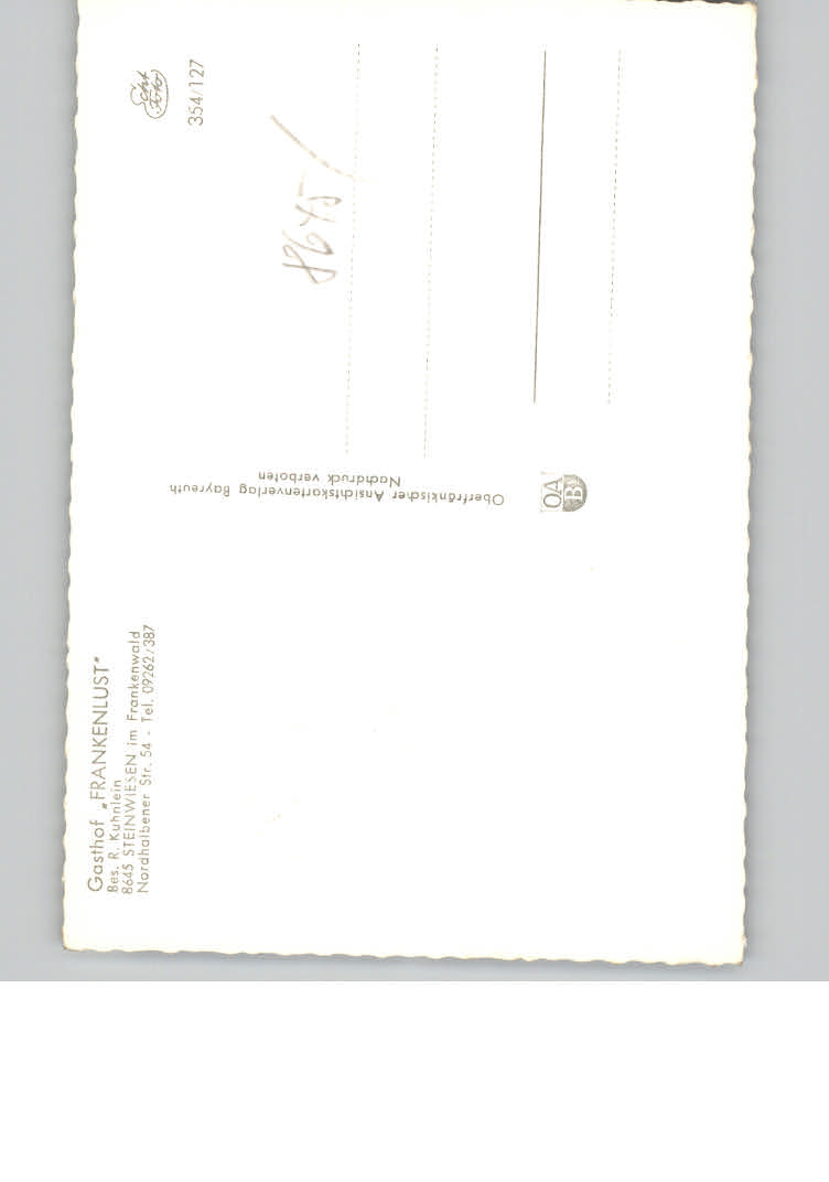 31169247 Steinwiesen Gasthof Frankenlust postalisch nicht gelaufen KatCode: 11110009476177