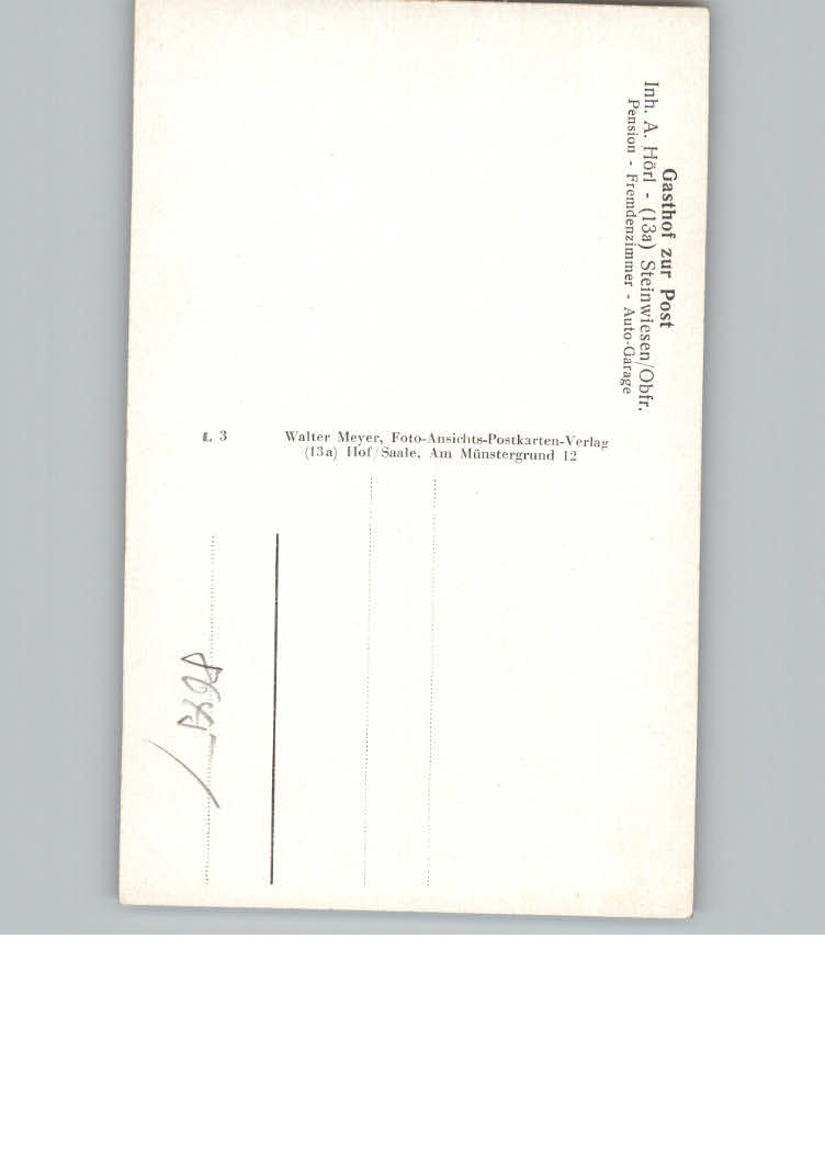 31168843 Steinwiesen Gasthof zur Post postalisch nicht gelaufen KatCode: 11110009476177