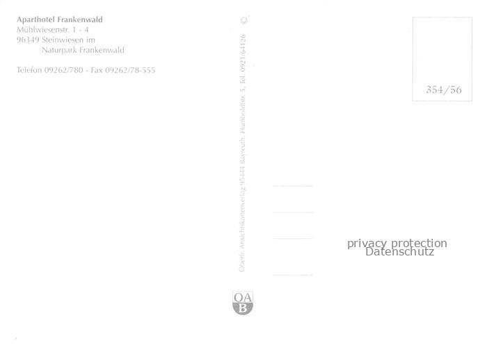 74100327 Steinwiesen Kronach Bayern Aparthotel Naturpark Frankenwald Restaurant Freibad postalisch nicht gelaufen Erhaltung siehe scans [FriedD77] KatCode: 11110009476177