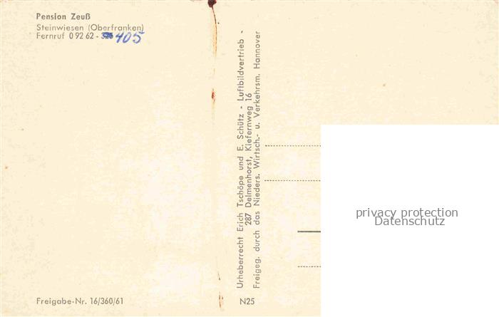 74024895 Steinwiesen Kronach Bayern Fliegeraufnahme Pension Zeuss postalisch nicht gelaufen Erhaltung siehe scans [WerneD78] KatCode: 11110009476177