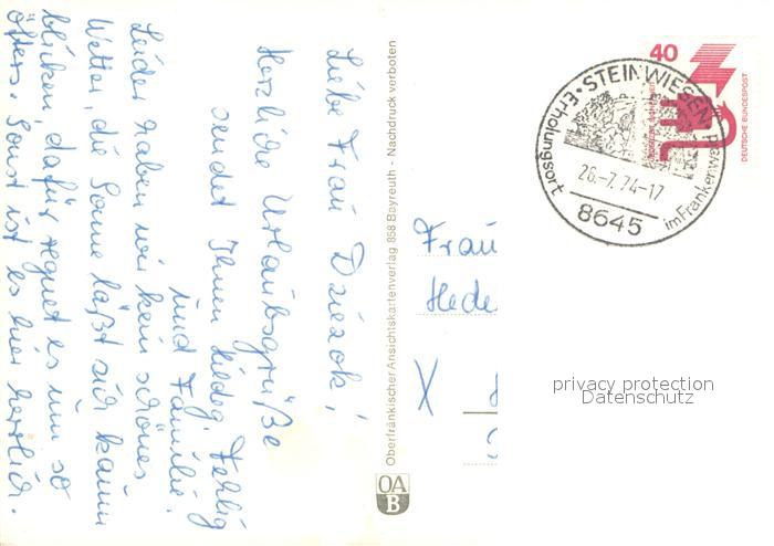 73746181 alte Postkarte Steinwiesen Orts und Teilansichten Muehle Floesserkanal postalisch gelaufen Erhaltung siehe scans [WerneD78] KatCode: 11110009476177