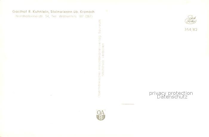 73730284 Steinwiesen Panorama Gasthof Kuhnlein Gastraeume postalisch nicht gelaufen Erhaltung siehe scans [WerneD78] KatCode: 11110009476177