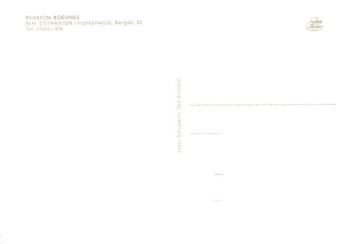 73864368 Steinwiesen Pension Boehnke Gastraum Fremdenzimmer Blick auf den Ort postalisch nicht gelaufen Erhaltung siehe scans [FriedD77] KatCode: 11110009476177