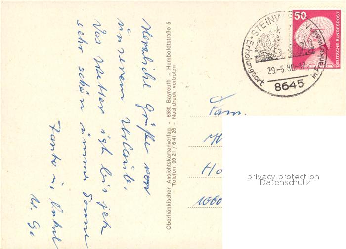 73737090 alte Postkarte Steinwiesen Waldpartie Panorama Kanal postalisch gelaufen Erhaltung siehe scans [FriedD77] KatCode: 11110009476177