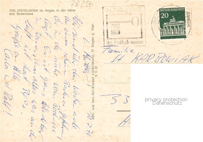 73865676 alte Postkarte Steisslingen Panorama Kirche Uferpartie am Wasser postalisch gelaufen Erhaltung siehe scans [FriedD77] KatCode: 11110008335077