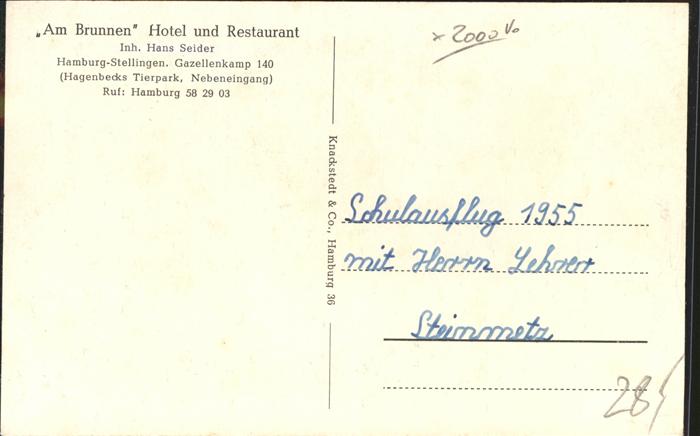 41057396 Stellingen Hamburg Hotel Am Brunnen postalisch nicht gelaufen Alte Ansichtskarte Postkarte Chri Katcode 11110002000000