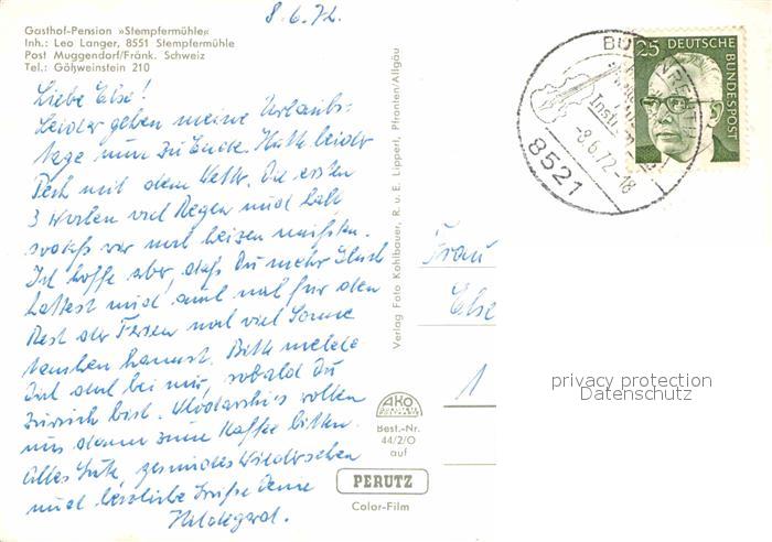 72711722 alte Postkarte Stempfermuehle Gasthof Pension Stempfermuehle postalisch gelaufen Erhaltung siehe scans [FriedD77] KatCode: 11110009474129