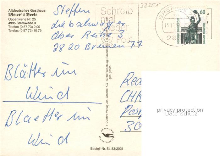 73657510 alte Postkarte Stemwede Altdeutsches Gasthaus Meier’s Deele Festsaal Pferdewagen postalisch gelaufen Erhaltung siehe scans [FriedD77] KatCode: 11110005770044